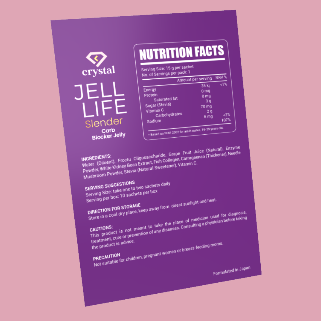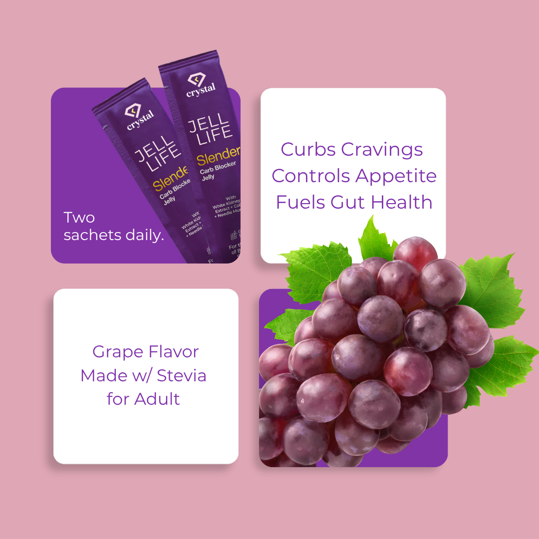 Jell Life Slender Carb Blocker Jelly helps you cut down on carbs in a delicious grape flavor. Its ingredients, including fructo oligossacharides and white kidney bean extract, work together to block carbs while promoting collagen production. Enjoy the taste without the guilt.